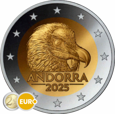 Esta moneda está dedicada al quebrantahuesos (Gypaetus barbatus), una de las aves más emblemáticas del Pirineo andorrano. Esta especie de buitre, reconocible por su denso plumaje y su pico ganchudo, se encuentra actualmente en la lista de especies en peligro de extinción. Con esta emisión, Andorra quiere destacar la importancia de proteger y preservar sus especies.