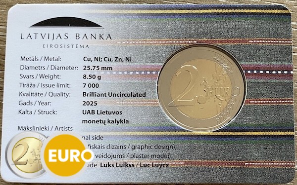 Esta moneda de 2 euros conmemorativa celebra el escudo de armas de Sēlija, una región histórica de Letonia. Su emblema, con elementos simbólicos, refleja la rica historia e identidad de Sēlija dentro de la cultura letona.