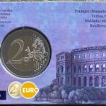 Cette pièce de 2 euros commémorative rend hommage à l’Amphithéâtre de Pula, l’une des arènes romaines les mieux préservées au monde. Ce monument impressionnant du Ier siècle symbolise le riche patrimoine et l’histoire de la Croatie.