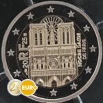 Cette pièce de 2 euros commémorative rend hommage à Notre-Dame de Paris à l’occasion de l’achèvement de sa restauration après l’incendie dévastateur de 2019. Chef-d’œuvre gothique et symbole de l’histoire et de la culture françaises, elle retrouve toute sa splendeur.