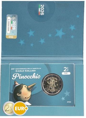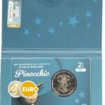 La pièce commémorative de 2 euros d’Italie 2026 célèbre le 200ᵉ anniversaire de la naissance de Carlo Collodi, l’auteur italien du célèbre conte Pinocchio. Le côté national représente Pinocchio dans une pose vive, sa longue nez caractéristique et l’ombre tournée vers le Grillon Parlant, symbolisant l’esprit du récit. L’inscription « CARLO COLLODI 1826 – 2026 » est placée en haut, tandis que « PINOCCHIO » figure en bas. Cette pièce rend hommage à l’un des personnages les plus aimés de la littérature jeunesse et souligne l’héritage culturel italien.