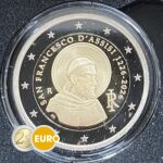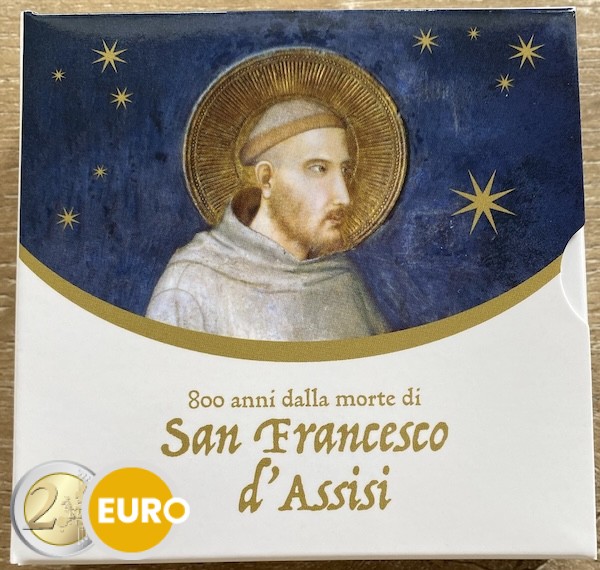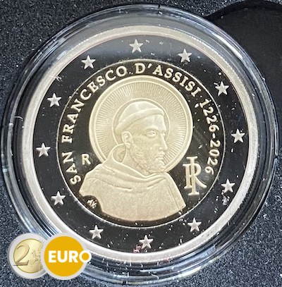 Cette pièce de 2 euros commémorative d’Italie 2026 est dédiée au 800ᵉ anniversaire de la mort de François d’Assise, l’un des saints chrétiens les plus vénérés. Le côté national représente une image inspirée d’une célèbre fresque de la basilique d’Assise, entourée de l’inscription « SAN FRANCESCO D’ASSISI 1226‑2026 ». Cette pièce rend hommage à sa vie d’humilité, de paix et d’harmonie avec la nature, ainsi qu’à l’héritage spirituel durable qu’il a laissé.