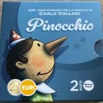 This 2 commemorative coin 2026 from Italy honors the 200th anniversary of the birth of Carlo Collodi, the Italian author best known for creating Pinocchio. On the national side, a dynamic depiction of Pinocchio with his signature long nose is featured, with his shadow looking toward the Talking Cricket — capturing the whimsy and moral lessons of the timeless tale. The top of the design reads “CARLO COLLODI 1826 – 2026”, and “PINOCCHIO” appears at the bottom. This coin celebrates one of literature’s most iconic characters and Italy’s rich storytelling tradition.